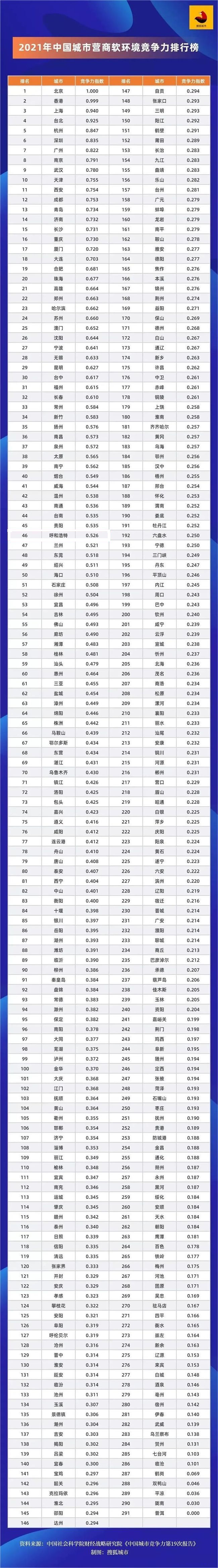 附:2021年中國城市營商軟環(huán)境競爭力排行榜