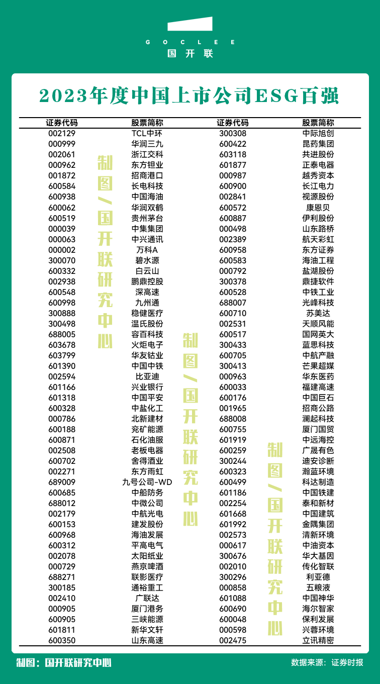 2023年度中國上市公司ESG百強