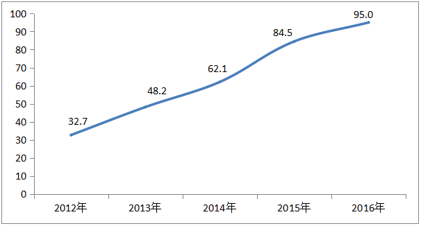 2012年,智能電視滲透率僅為32.7%。到2015年底,智能電視已逐漸普及,絕大部份在市場上銷售的電視均為智能電視。預(yù)估到2016年電視智能化會(huì)全面普及,滲透率將達(dá)95%或以上。