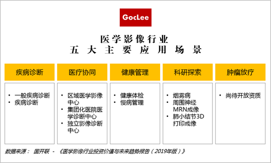 《報(bào)告》預(yù)測(cè),隨著多方資本的介入,獨(dú)立醫(yī)學(xué)影像中心應(yīng)用場(chǎng)景必將不斷拓寬,以健康管理、科研探索、腫瘤放療、精密體檢、慢病管理等為代表的多元化應(yīng)用場(chǎng)景在短期內(nèi)或?qū)⒈豢焖偌せ睢?/strong>