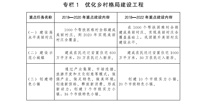 (三)規劃創建特色小鎮。按照產業、文化、旅游、社區功能“四位一體”新型空間與生產、生活、生態融合發展的總要求,在我市建制鎮的基礎上,充分利用各類產業園區、創意街區,以聚焦高端制造業、現代服務業、特色文化產業和歷史經典產業為導向,加快培育創建一批產業特色鮮明、人文氣息濃厚、生態環境優美、兼具旅游與社區功能的特色小鎮,促進產城融合,推進城鄉雙向融合,到2022年常住人口城鎮化率達到84.5%。