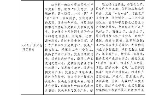 ——堅持鄉村全面振興。準確把握鄉村振興的科學內涵,充分挖掘鄉村多種功能和價值,統籌謀劃農村經濟建設、政治建設、文化建設、社會建設、生態文明建設和黨的建設,注重協同性、關聯性,整體部署,協調推進,促進農業全面升級、農村全面進步和農民全面發展,實現鄉村產業振興、人才振興、文化振興、生態振興和組織振興。