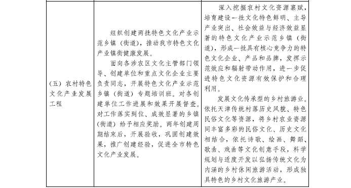 (三)廣泛開展群眾文化活動。創新活動載體,打造精品活動,形成“一區一品”,有條件的地區打造“一鎮一品”或“一村一品”。建設書香天津,廣泛開展農村全民閱讀活動,推進閱讀大眾化、家庭化和生活化。按照雅俗共賞、普及提高的原則,積極組織豐富多彩的群眾性文化活動。推進民間文化藝術之鄉建設,打造一批文化強鎮強村。鼓勵群眾自辦文化團體,支持成立讀書會、合唱隊、舞蹈隊等群眾文化活動團隊。通過組織示范性展演等形式,為民間文化隊伍和群眾文化愛好者提供展示交流平臺。完善農民健身體育場地設施,推廣建立行政村村民健身會,開展農民體育賽事活動。