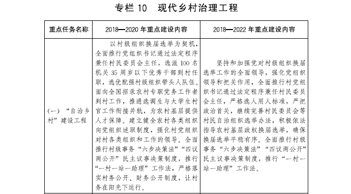 走鄉村善治之路,建立健全黨委領導、政府負責、社會協同、公眾參與、法治保障的現代鄉村社會治理體制,促進自治、法治、德治相結合,推動現代鄉村治理工程建設。