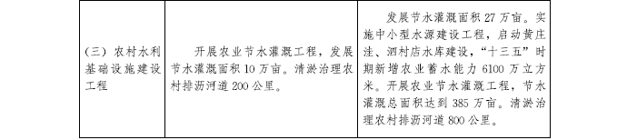 (二)加強農村水利基礎設施建設。繼續實施農村飲水提質增效工程,提升農村生活用水飲水質量。新建中小型水源工程,增加農業灌溉水源,發展高效節 水灌溉,提高用水效率。實施農村國有揚水站更新改造工程,推動農村河渠、橋閘涵維修改造,提高農村排澇能力。開展中小河流綜合整治,推進農村智慧水利建設。