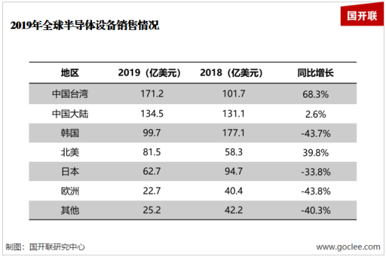 我國是全球半導體的進口大國,每年進口全球60%的集成電路產品,但集成電路產值只占據全球8%的產值。在半導體設備領域,我國對半導體設備的需求量巨大,還處于不斷的上升中,2018年我國大陸市場半導體設備銷售額首次超越臺灣,以131億美元的銷售額位于全球第二,2019年更是在全球市場中與臺灣成為唯二實現銷售額增長的市場,但我國集成電路設備商僅占據全球5%的市場份額,巨大的市場需求和極為少量的設備輸出形成巨大的反差,也顯示出我國對歐美日等國家高端半導體設備依賴程度之深。