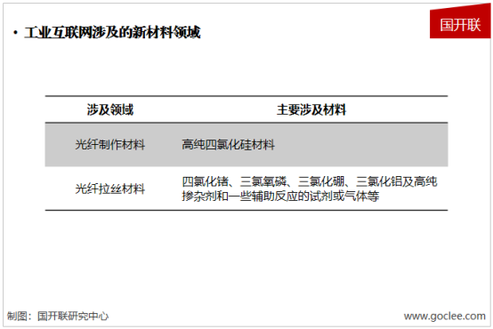 工業互聯網是智能制造發展的基礎,其運行的關鍵是數據的流動,通信是基礎,其主要的需求材料是光纖傳輸材料,主要包括光纖制造、光纖拉絲等領域的硅材料和輔助反應氣體材料。