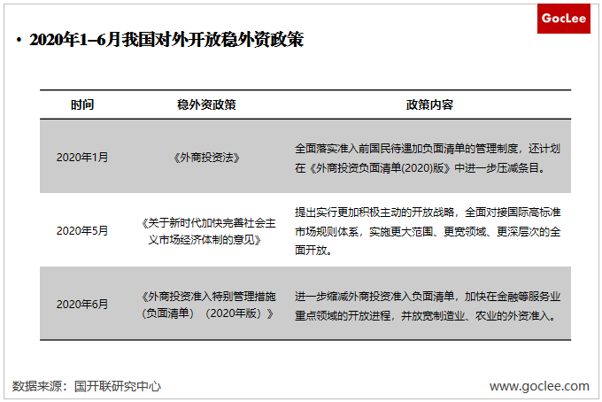 疫情并未阻擋我國持續推進對外開放的步伐,在國家層面的戰略部署上,今年的國務院政府工作報告中,已就如何促進外貿基本穩定、積極利用外資、高質量共建“一帶一路”、推動貿易和投資自由化便利化等進行了詳細地部署。正穩外資的措施上,我國陸續出臺多項政策擴大對外開放,從1月《外商投資法》正式出臺,到《關于新時代加快完善社會主義市場經濟體制的意見》、《外商投資負面清單(2020)》等政策的落地,我國不斷實施更大范圍、更寬領域、更深層次的全面開放。