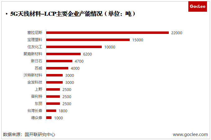 但從目前市場競爭格局來看,5G新材料的國產化率仍然不及預期,由于材料特殊性,且技術壁壘較高,我國5G天線關鍵材料主要集中在低端產能部分,高端產能、電子級的材料多依賴于進口。以LCP為例,目前LCP的電子級材料市場行業(yè)集中度較高,主要被塞拉尼斯、寶理塑料、住友化工等日美企業(yè)所壟斷,2019年三家企業(yè)的產能市場占比達60%,而目前國內只有沃特新材料突出重圍。