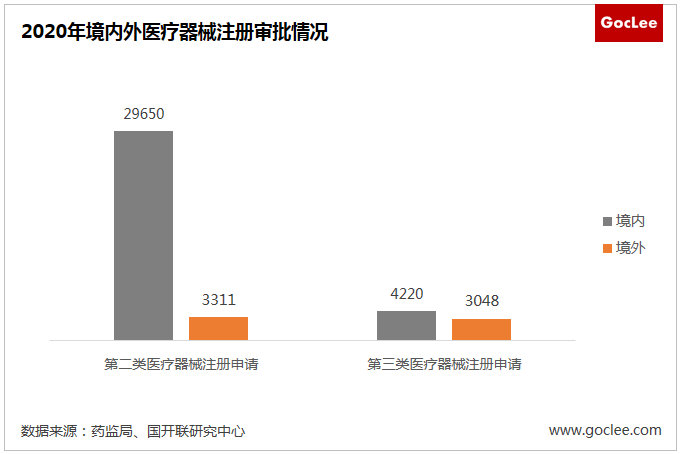 國內多數醫療器械生產企業集中在中低端市場,高端器械仍依賴于進口。截至2020年8月底,全國實有醫療器械生產企業26456家,比去年增長四成,其中90%的企業收入不足2,000萬元,大多為小規模生產企業。在高端器械方面,2020年,境內第三類醫療器械注冊受理共4220項,與2019年相比增加20.2%,進口第三類醫療器械注冊受理共3048項,與2019年相比增加20%,高端器械行業仍依賴于進口。