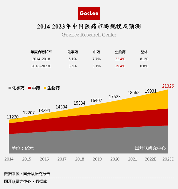 醫藥行業是我國國民經濟的重要組成部分,在保障人民群眾身體健康和生命安全方面發揮重要作用。根據國開聯研究中心報告顯示,預計到2023年,中國醫藥市場將達到2.13萬億元,2018年至2023年的年復合增長率為6.8%。