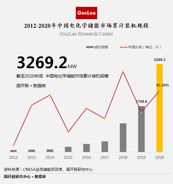 根據(jù)國開聯(lián)《儲能材料行業(yè)投資價值與未來趨勢研究報告》顯示,2020年儲能產(chǎn)業(yè)雖受新冠疫情影響,但我國儲能裝機逆勢大幅增長,據(jù)CNESA全球儲能項目庫的不完全統(tǒng)計,截至2020年底,中國已投運儲能項目更新裝機規(guī)模35.6GW,占全球市場總規(guī)模的18.6%,同比增長9.8%。其中,新增投運電化學儲能項目規(guī)模1559.6MW,新增投運規(guī)模首次突破GW大關,是2019年同期的2.4倍,中國儲能步入規(guī)模化高速發(fā)展快車道。
