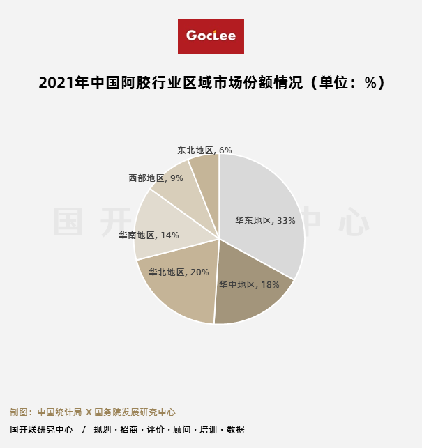 從阿膠消費來看,由于華東地區冬季食用阿膠膏方的習俗,其阿膠消費全國第一,占比33%。其次,華中和華北地區也有一定的阿膠消費基礎,占全國的18%和20%,華南地區消費占比為14%,西部地區占比9%,東北地區占比為6%。