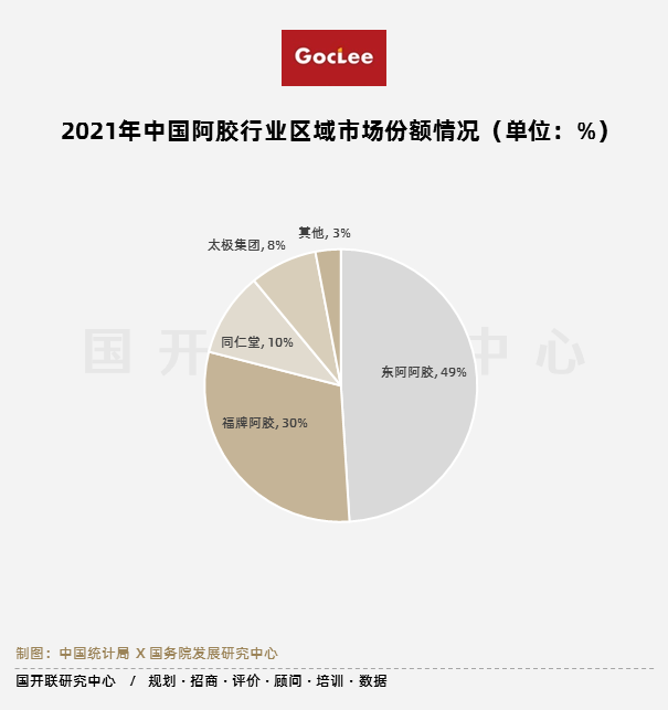 根據中康CMH統計,從阿膠行業企業競爭來看,2020年東阿阿膠占我國阿膠行業市場份額的49%,福牌阿膠占比30%,兩大企業總和占比阿膠行業市場份額近80%,呈現絕對領跑的雙寡頭局面。而剩余的市場份額隨著近年來市場“新面孔”的出現,包括同仁堂阿膠、太極天膠、佛慈阿膠等,均憑借打造差異化產品立足市場,一同促進阿膠市場的發展。