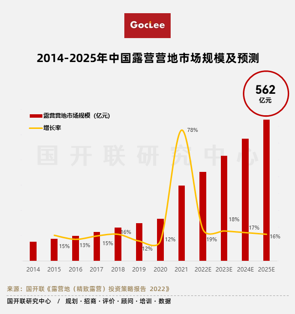 目前露營的需求側、供給側和基礎設施都依然處于爆發式增長階段,預計增長率達到15%-20%時就會進入平穩發展期。
