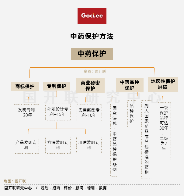 通過對中藥新藥實施組方、工藝等多種專利保護,筑造企業創新護城河,加強企業創新積極性。和一般化藥一樣,中藥專利保護期為20年。而對應該藥物新適應癥的拓展、質量標準的提升、工藝的改進、設備提升等方面均可申請相關專利的保護,因此,中藥新藥的保護期或長于化學藥。