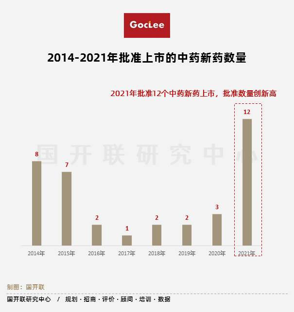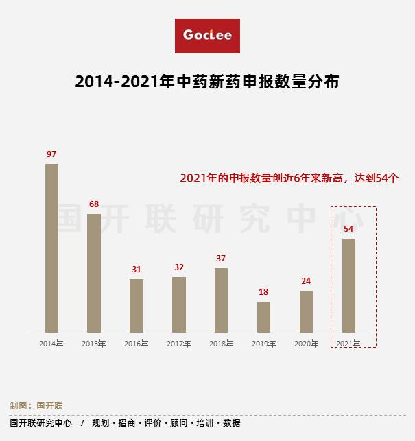 據國開聯研究中心發布的《中醫藥(綜合)行業研究報告2022》數據顯示,受疫情及國家相關政策推動影響,中藥新藥申報數量從2020年開始開始回升,2021年的申報數量創下近6年新高,達到54個。2021年共有12個中藥新藥獲批上市,批準數量創新高,比2017-2020年獲利之和還多。中藥審批審評制度改革已初顯成效,中藥創新研發正被逐漸崛起,成為新投資者重點關注領域。