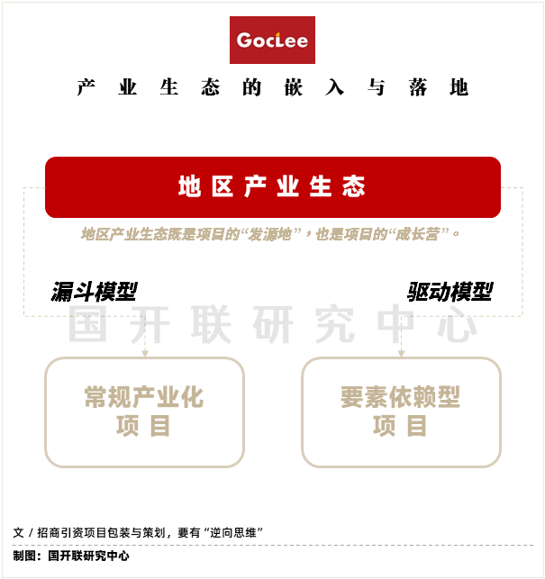 國(guó)開聯(lián)招商引資專業(yè)服務(wù)團(tuán)隊(duì)指出,針對(duì)常規(guī)產(chǎn)業(yè)化項(xiàng)目,應(yīng)綜合考量產(chǎn)業(yè)規(guī)劃戰(zhàn)略框架和產(chǎn)業(yè)鏈體系結(jié)構(gòu),采用“漏斗模型”來生成重點(diǎn)招商引資項(xiàng)目;針對(duì)特定要素依賴型項(xiàng)目,則應(yīng)采用關(guān)鍵要素“驅(qū)動(dòng)模型”來生成特色招商引資項(xiàng)目。