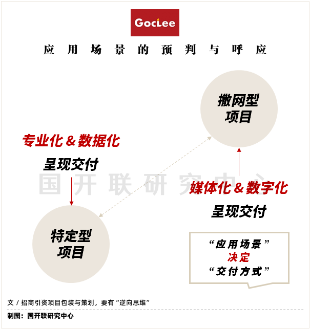 國(guó)開聯(lián)招商引資專業(yè)服務(wù)團(tuán)隊(duì)認(rèn)為:“撒網(wǎng)型項(xiàng)目”要發(fā)揮其作用,其關(guān)鍵在于傳播,以實(shí)現(xiàn)更廣泛人群的覆蓋和影響,因此,圍繞“撒網(wǎng)型項(xiàng)目”的交付,應(yīng)在傳統(tǒng)交付基礎(chǔ)上,順應(yīng)當(dāng)前“自媒體化”和“數(shù)字化”的社會(huì)浪潮,制作、交付符合大眾傳播偏好的數(shù)字化成果。