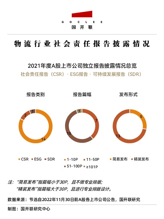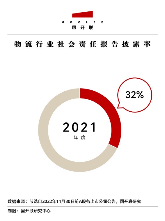 在A股上市的物流公司中,2021年度獨(dú)立披露社會(huì)責(zé)任報(bào)告(CSR)和ESG報(bào)告的企業(yè)共計(jì)17家,整體披露率達(dá)32%。