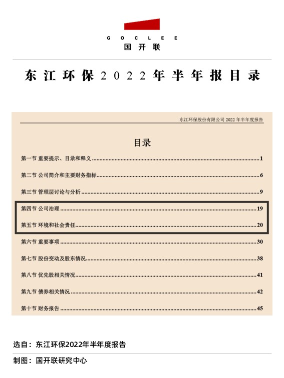 2022年半年度報告中,東江環保也專門設立了獨立章節來陳述企業ESG實踐之道,即“第四節”和“第五節”。
