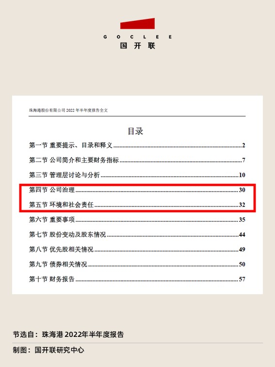 在2022年度半年報中,珠海港也安排專門章節針對ESG相關內容進行了陳述。