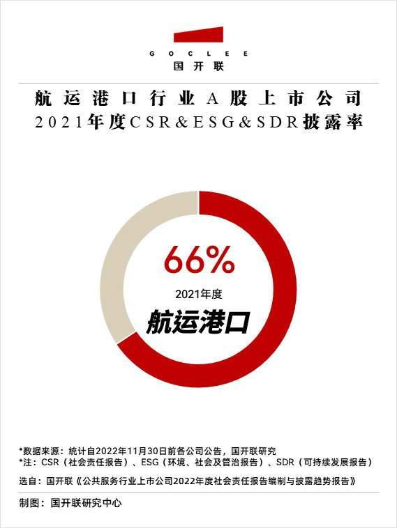國開聯統計數據顯示,2021年度航運港口行業A股上市公司披露率高達66%。