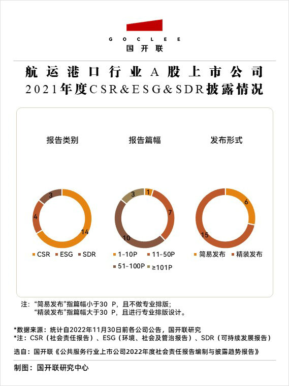 第一,在當前行業形勢和企業共識的引領下,預計2022年度航運港口行業A股上市獨立披露社會責任報告(含ESG、SDR)的披露率和報告質量都將得到進一步的提升;