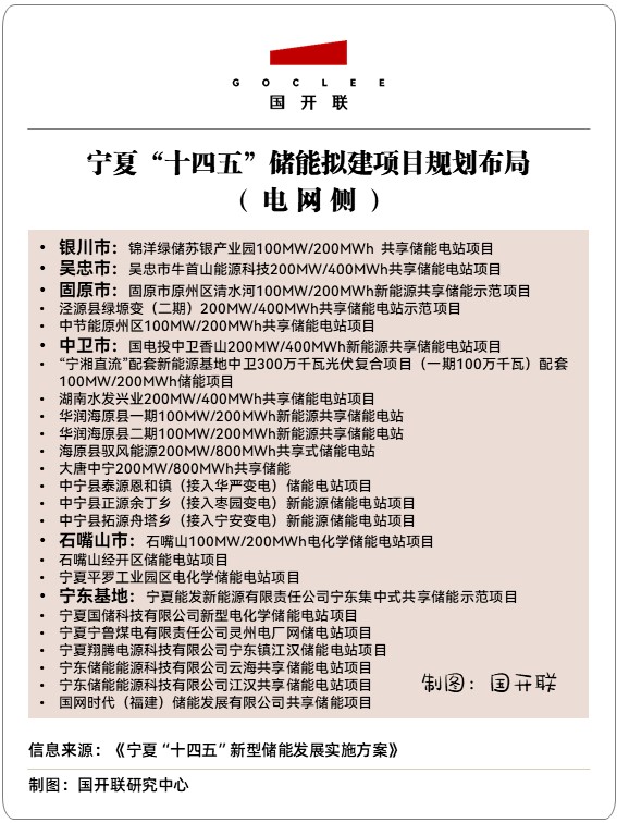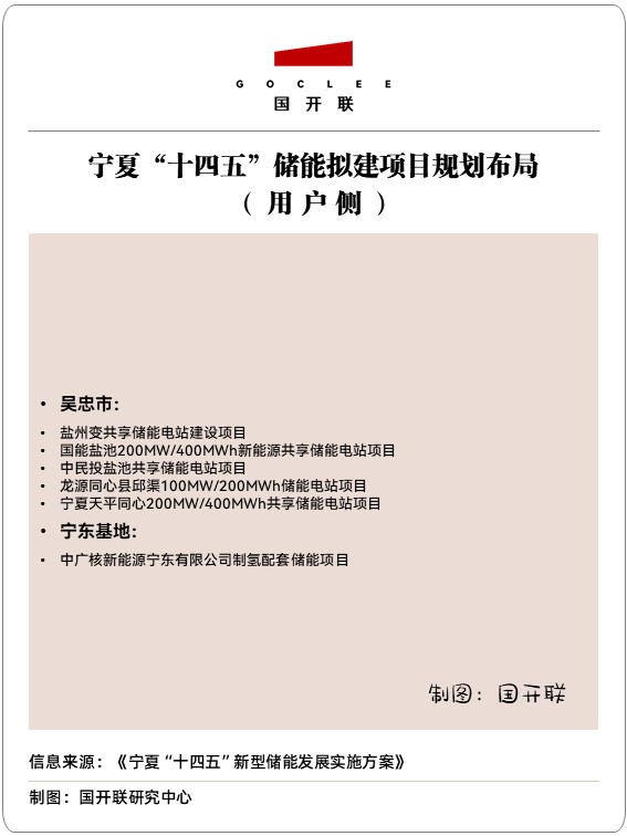 寧夏“十四五”儲能擬建項目規劃布局(用戶側)